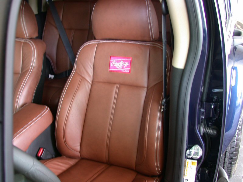 Ahhhh....NOW I see crappy wood grain. I agree with RYD - Looks like shiznit!!! It's not a great picture of it, but from a distance it looks pretty cheesy. I'm still not crazy about the over all color scheme. Blue truck, brown leather seats, and black and tan for everything else. Too busy for me. If they had gone with black leather, even the red Rawlings badge would look better. |