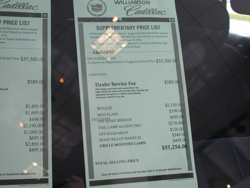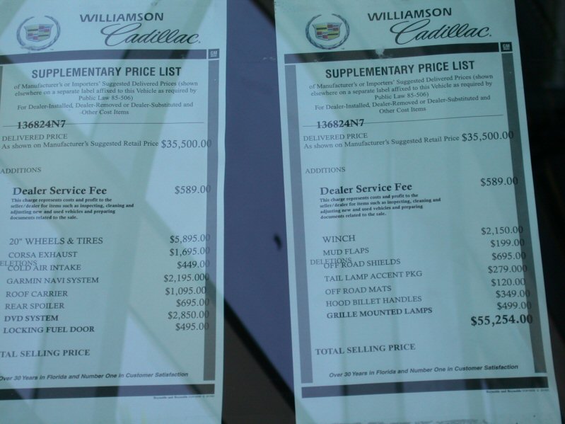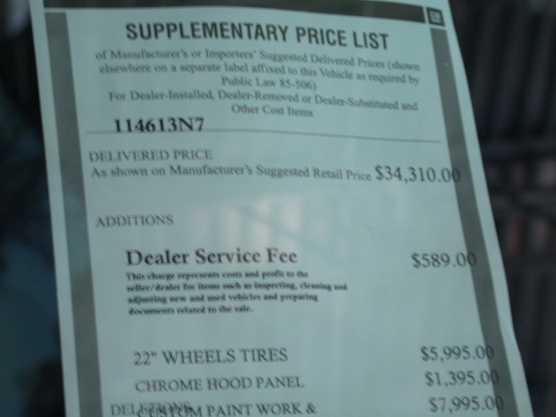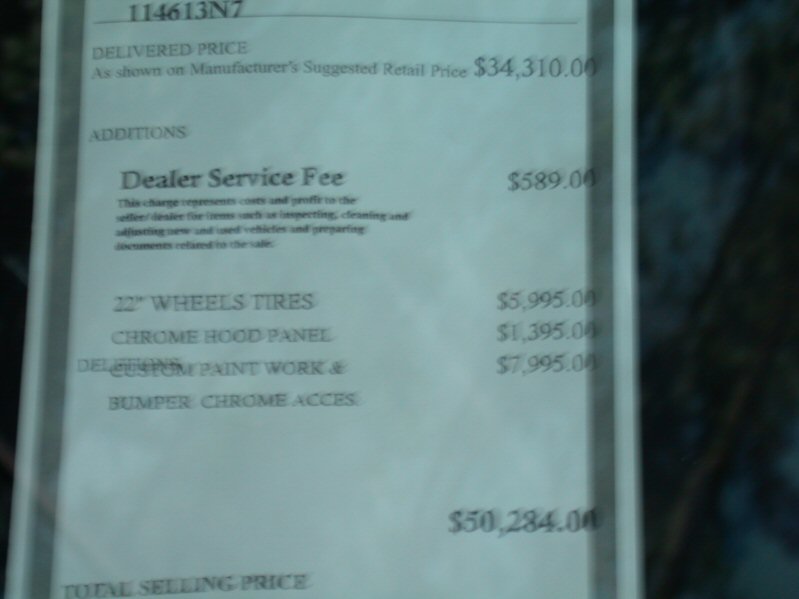 Dropped off the Yellow Duck this morning for a REDO (engine light came on AGAIN, OnStar says its a Fuel Management Problem. hope they fix it this time...) ANYWAY They had an 07 Dark Blue H-3 (unlocked, next to the NEW showroom) Base model with an auto tranny but I noticed on the front side fender a chrome insignia in script saying RAWLING EDITION The additional sticker said $3295 for the Custom Leather Seats, front & back as well as UGLY PHONEY Wood Grain Plastic on part of the dash as well as the surround for the window controls. They even had the BALLS to have printed on there : ADDITIONAL DEALER PROFIT of $595 NOW the seats were REAL NICE, like glove leather (the color of an aged baseball glove) I think there were the nicest leather seats i have seen in ANY car/truck/suv... The wood grain was CRAP... Dark Blue exterier and Brown Seats, well not the greatest color combo, (have to ask GAY GOOEY about that combo) Something else I found unusual, it wasn't a LUX PKG, nor a ADV PKG, no sunroof, Stock wheels etc etc, just a BASE Model with auto... |