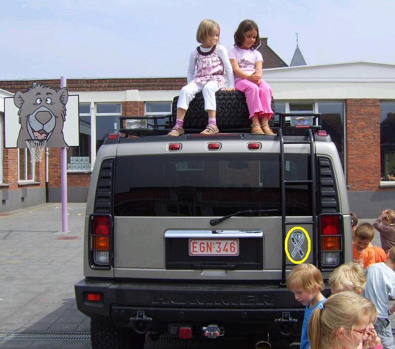 As y'all probably know by now, Hummers are pretty extremely rare over here in Belgium. My oldest daughter's (5 yo) teacher asked if I could come to her school with my truck. It was great to see my beast stormed by 25 rugrats... They all climbed on the roof, squeezed behind the wheel, found out about the airhorn :fdance: , even took my Jason mask :fdance: ... Well, those kids had a great time and that's what counts !!