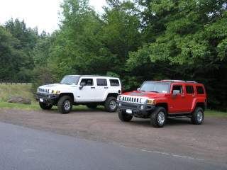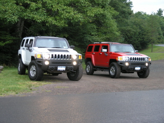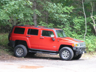 hey all you in the forums, fello fans. i was wondering, right now i own a black h2 but was wondering if i should trade in my tahoe for an h3, i would like the victory red color, so if any of you have pictures of the victory red (perfeibly with roof racks) id like to see them. thanks