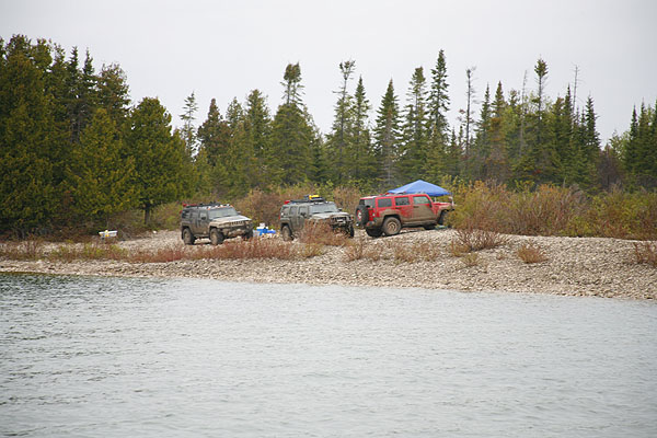 Check out our campsite, 10 miles from anywhere, right on the edge of Lake Huron.