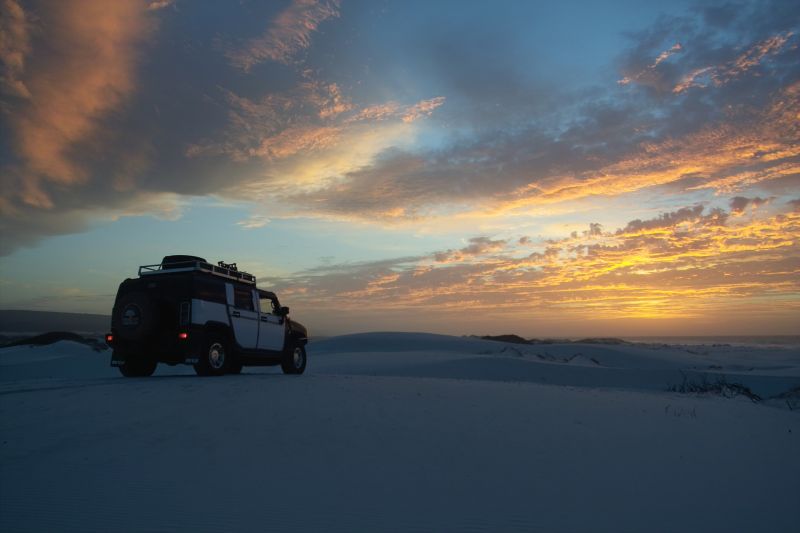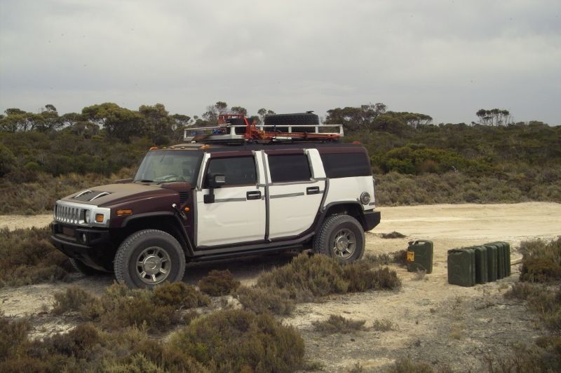 I've got it sussed, comments on all shots to follow a bit later today, thanks for the pointers guys. Enjoy, Al. Attachment 47512 The cliffs that become the Great Australian Bight, This is as far East in Western Aust one is able to travell by beach. Attachment 47513 Here comes the sun...wasn't that a song...oops, showing my age... Attachment 47514 Still rising... Attachment 47515 The sun has risen... Attachment 47516 Bilbunya Dunes, these have shifted along the coast about 10km over the last 4-5 yrs Attachment 47517 These dunes are about 120/130M high Attachment 47518 Bilbunya dunes from the top..spot the Hummer.... Attachment 47519 They just go forever... Attachment 47520 A whale jaw washed up on the beach, same length as the H2. That's the jaw, imagine the size of the whole bl)(*&dy thing... Attachment 47521 Attachment 47522 There is a track, but it's hard to see, if you look past the back of the H2 you'll see the track towards left hand side of the top right hand quadrant. Attachment 47523 Refuelling, I carried 120L or a full tank in the Jerry cans. Attachment 47524 End of the bush / beach driving and back on the road. Attachment 47525 A bush fire started by lightening. Attachment 47526 Sun setting on the last day of the drive. Attachment 47527 Pic of Perth City from the South Perth foreshore, a popular park. Attachment 47528 Caper trailer I'll use on some trips, it now sports a pair of H2 rims so all tyres are interchangeable. Attachment 47529 Man you should see these things fly, they either have the most sophisticated navigation system on the planet or none at all, their all over the show like a cut snake. |