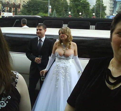 and its got to be staged...what guy would want his new wifes jugs hanging out like that...Larry Flint? |