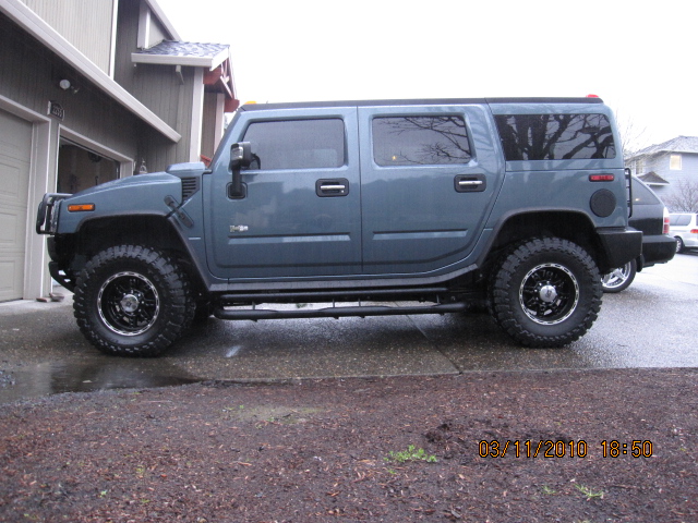 I bought the HUMMER for $29,900 with 24,768 miles on it from a Mercedes dealership in Portland. Had it shipped here for 1150.00 I'll just keep adding to this thread as things change! 1st- Thanks to everyone for the help and advice. Whether directly or indirectly everything I've done has been based off of info gathered from these forums! :beerchug: On with it- Both bumpers hit with GRIOTS- holding up well.. great stuff! The spare tire removal is done (with the exception of still needing the tow hook attachments--PM me if you have any) I used GMparts direct to get a replacement license plate pocket that has the plate lights in it. Did you know you can get an all black one? This was a nice find for me, the all black, because I really didn't want that chrome strip across the top of the pocket. The installer used the original spare tire wire harness and the same connection point. He then ran the wire up the wheel well into the back passenger side of the HUMMER, the side behind cowling and into the lift gate. While doing the pocket, I had a back up cam installed along with a coastal tech universal lock pick. The truck now pops the cam on when the car is in reverse, or at any time I push the button on the remote control. The lock pick also lets me watch video from my ipod touch, listen to music, police scanner, etc... very cool stuff. Also installed is the VIPER smart start remote start setup. Works great! The black berry app is coming soon. I just start it using the key fob for now, or with my ipod touch if I have WIFI available. The smart start system has a nice feature(among many) that will start the car if the battery dips below 10.5 volts. This is great if you want to light up the camp site with a light bar or??? and not start the car. All the chrome has been powder coated black, see pics! New XD revolver wheels/tires I still need to get the nerf bar traction pads and the right parts to put them back together.. I just got two more roof cross bars, for a total of four. In the works: Headlight upgrade- not sure if I'm going HID or silverstars DRL mod- will be setup to work only when the headlights are on Light bar- this will consist of 8 four inch PIAA SMR driving lights and the use of one of the roof cross bars. Two PIAA 520 SMR fogs for the brush guard- since I live in Portland I called PIAA. They happened to have a couple SMR fog lenses laying around and were nice enough to piece together a complete kit for me (you can't get these anymore).... PIAA has been great and I would recommend them to anyone. Powder coat the 4 roof crossbars black. Powder coat the skid plate black with the raised "H2" powder coated to match my truck. That's it for now.. any questions let me know.. I'll update as things happen. Pics below |
