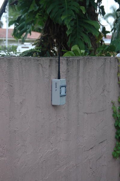 The detector heads are weatherproof - detect movment up to 100 feet and transmit a signal back to the base station up to 2000 feet away. The base station has the ability to monitor 14 detection zones. Everything is battery operated - the base station has mains supply but has a 18 hour battery back up.