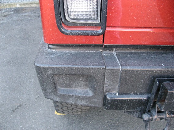 i look and the clearance between the rear bumper and the tailgate/back sheet metal is about 1/2" on the rt side and none on the left.