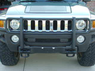 '06 H3 Shadow Green, Adventure, 6 disk Monsoon, SMA brush guard w/PIAA lights, Rocky Road extreme rocker protection, roof lights(off road), lower grill lights(off road), Helo Maxx8 Black Wheels, 35" Cooper STT, Garmin I-Que M4 to get home.