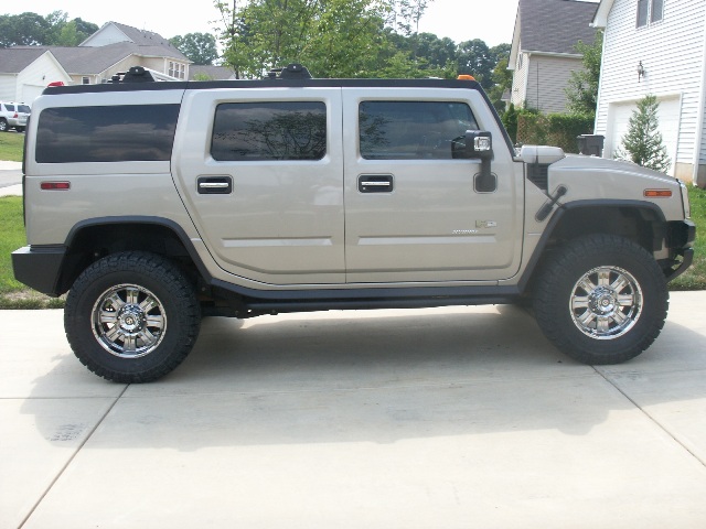 05 H2 SUV cus. paint, Magnuson SC 6/12lb boost, cowl hood scoop, 12" dash touchscreen, GM elec. fans, HPTuners.com tuning soft., Dynatech headers dual catback exhaust Jet Hot chrome front to back Flowmaster Super 40's, Diamo 8 Karat rims & 325X60-20" Toyo, 4 OEM Captain seats Katzkins leather, rear console computer inside running all AV/NAV etc., Infinity component system 3 amps Tsunami Caps, rear flip down 12" monitor, headrest monitors, overhead console boost, fuel pressure, & A/F ratio gauges