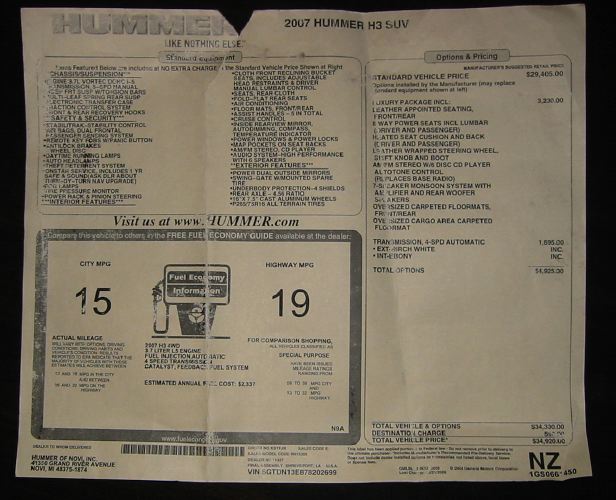 2007 Hummer H3 offroad edition- 35" Toyo Open country MT w/black rims & Brush guard