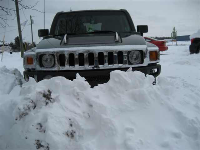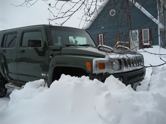 Hey everyone, posting a couple of pics of 06 shadow green H3.I was on the forum a couple of months ago before I got my H3 asking if anyone thought they were underpowered.Everyone was helpful and finally found one out of province, there are no Hummer dealers in little old P.E.I.Got a chance to try it out today in the biggest snowstorm in three years.