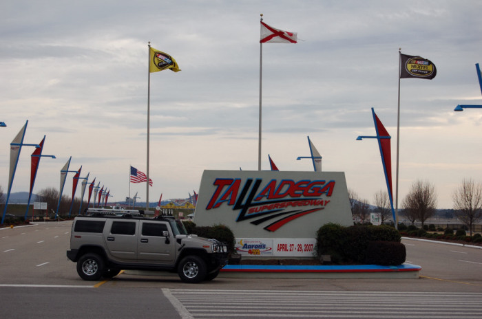 Well I'm finally posting pics of my 03 H2. Yesterday I got the chance to drive 7 laps on Talladega Super Speedway. Of course I decided to bring the Hummer.... When I got there I was told that it was the first Hummer that they know of that was ever driven the track. All I can say is Wow!!! On the first turn (first lap) we were only doing 30-40 and the further we went on the turn the more I began to Shat myself. I couldn't believe that I didn't roll over. I had no idea the turns were that steep. After that, I decided to put the pedal to the metal. Unfortunately, I didn't get it on the still camera, but on the video we passed a Firebird WS6 on the outside of turn 4 doing 100 mph. It was one fun day at the track!