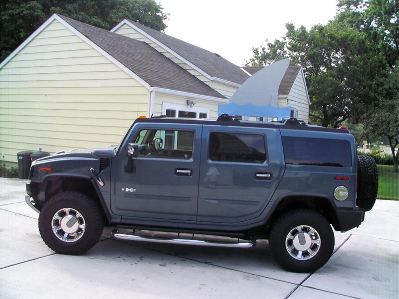 We always get gawked at in the H2....but slap a large shark fin on the roof and the looks get turned up by a factor of 10! People were taking pics of us on the way to the concert, laughing and point. Quite humorous!