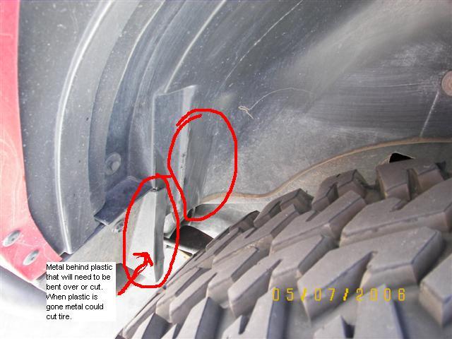 I have Goodyear LT 315/75R16's and they rub the sway bar at full lock and the front portion of the rear fender liners at full compression.