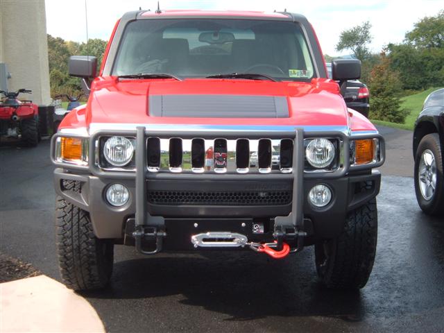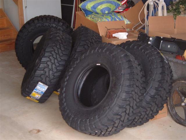 After 8 hours, i finally finished installing the DOI winch bumper. I think it looks excellent, and retains the factory approach angle. The only thing i dont like about it is that now the skid plate sticks out a little bit, which could get caught on a rock. And the last picture is of the tires i picked up the other day, and will be installed this week. I was able to fit all 5 in the H3.