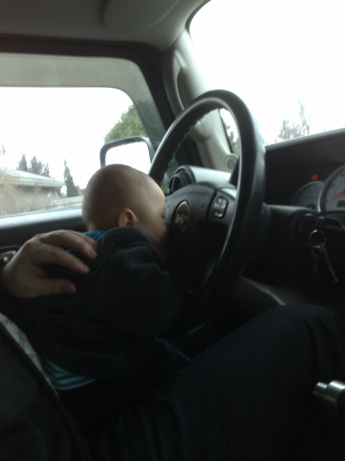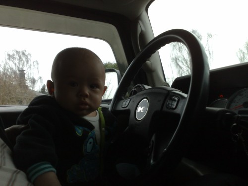 The little new one was just trying to figure out what a Hummer taste like