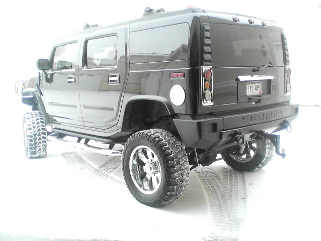 2006 Twilight Maroon H2, Procomp 6001 rims, 35" X 12.5 X 17 Xterrain tires, Ram over-the-hood brush guard, Jet Stage I, Warn 9.5 winch and winch bumper, Hedman Headers, K&N Air charger, Lightforce driving lights, a little CHROME for good measure