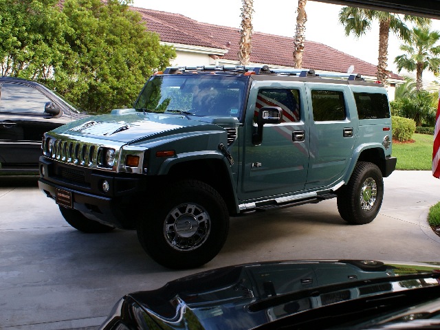 2006 Twilight Maroon H2, Procomp 6001 rims, 35" X 12.5 X 17 Xterrain tires, Ram over-the-hood brush guard, Jet Stage I, Warn 9.5 winch and winch bumper, Hedman Headers, K&N Air charger, Lightforce driving lights, a little CHROME for good measure
