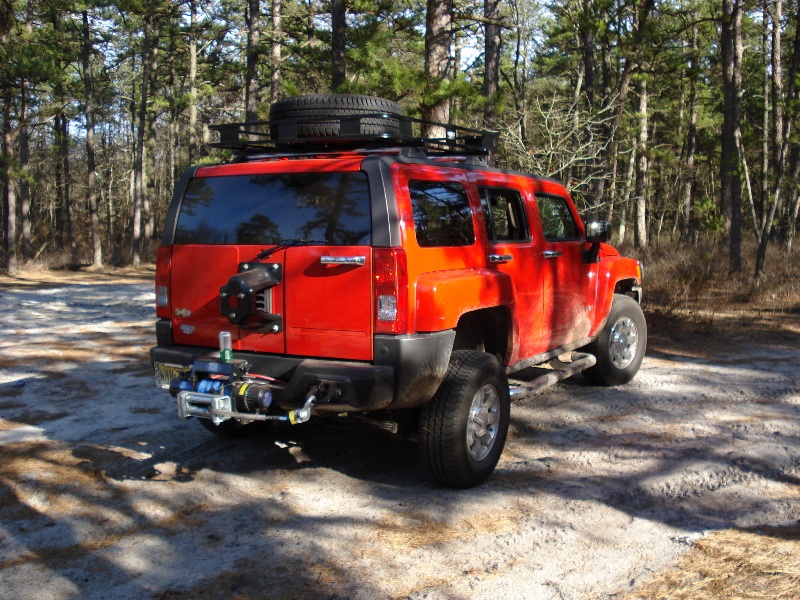 2007 H3 Lux/Adv 5 speed, Gibson Extreme Duals cat-back, K&N FIPK, PCMforless tune, SAW torsion bars, Samco Shackles, Fox Racing shocks, Trail Duty Bump Stops, 35" ProComp Xterrain tires w/Tactical Rims, Gobi Stealth Rack