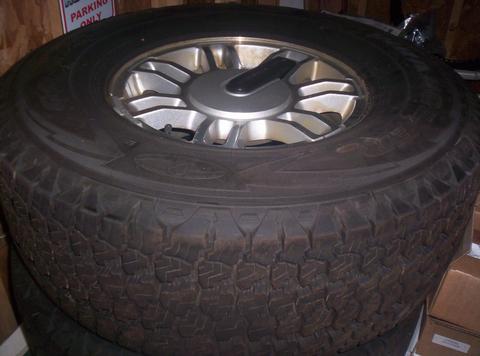 -4 Hummer H3 Stock Rims (not chrome) and center caps with 285/75-16 33' Goodyear Silent Armour Kevlar sidewall tires (excellent condition, about 2000 miles on tires, 1 tire has even less)