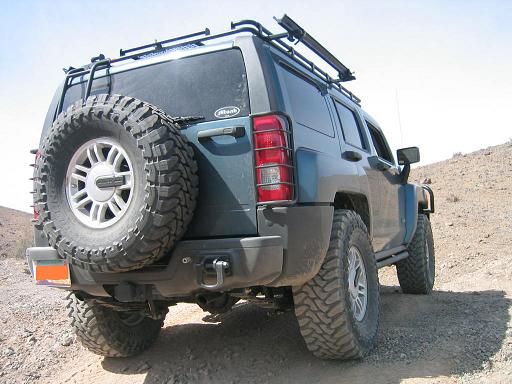 2006 H3 Adventure, green in & out, Line-X, no bling. Onboard air, Rino GPS, BVG roof rack, roof-mounted lights, Warn xd9000i winch, RR rails, Hunner's skid plates, custom UCP, rear tire rack, roofcam.