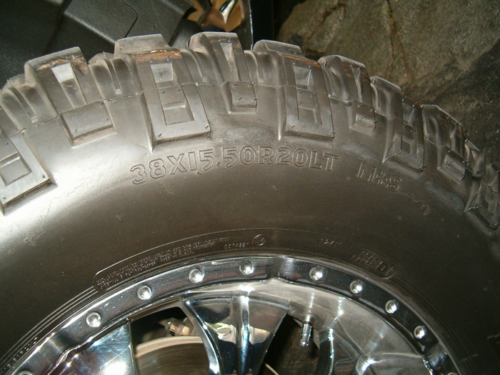 I would dare say those tires are not 38's but rather 36x15.50--could be wrong but i just dont see 38's fitting. Seems to me the mt is rolled closer to the camera in the side by side shot.