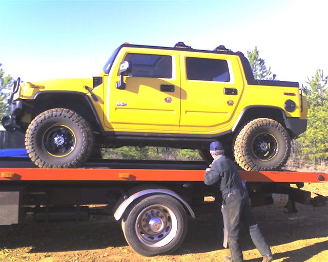 Ok, I've seen the videos an H2 crashing onto some rocks and SNAP goes the tie rod. Read HMR, they said to always carry a spare, weak link, blah blah, but again the description was going over some rocks. Smash my H3 around all the time, never any trouble. Had to bring my brother back to Gilmer, Tx to pick up his FJ that broke down the week before out there. Decided to take a couple of moderate dirt trails in the 2. The video and pics are what followed. If anyone asks me, the tie rods have to be replaced before going off road. Phil was great getting a pair sent overnight. I probably have bothered him too much since, but he's a wealth of knowledge. Love the Fabtech ones so far. They really look solid on the H2. I don't expect the same simple breakage from these.....Anyway, here's my poor video and yes OnStar saved my a**. The dealership also installed the Fabtech Tie rods at N/C. Great Hummer service.: