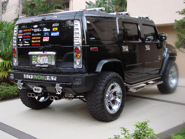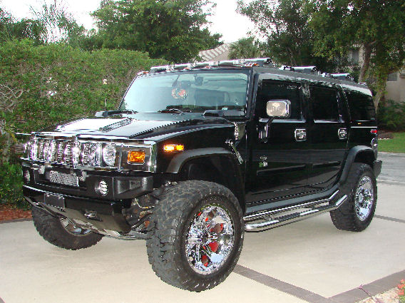 You guys are a riot..Here are some specs on BRUTE..2004 H2 bought new.Over 80 mods/additions with a few more to go. Lotsa chrome, dare I use the dreaded word on this forum, but very tastefully done. Engine: Magna charger s/c,Polished, Volant air intake, MSD wires, Hypertech thermostat, Dynatech long tube headers with flow through cats, Bassani dual exhaust, QTP exhaust cutouts, Blaupunkt dvd, cd, tv, mp3 player running through the oem nav unit, dvd headrests, Haodi rear digital backup display, Hitch cam rear view video cam, 37"x22" Toyo M/T's on Moto Metal 950 22"x12" wheels. Brembo gran turismo brakes all around. Soon to be installed corvette servo, thanks to info from Taz. A little more aesthetic work in the area of real fire air brushing should finish it off, then I will be more involved with the show circuit here in Fl..As far as more gal pics, I'm sorry to disappoint you. There was a dad with his little boy waiting to have his pic taken sitting in the drivers seat, so the gals wanted to give him his shot, much to my dismay..Maybe this pic will redeem me somewhat..BRUTE