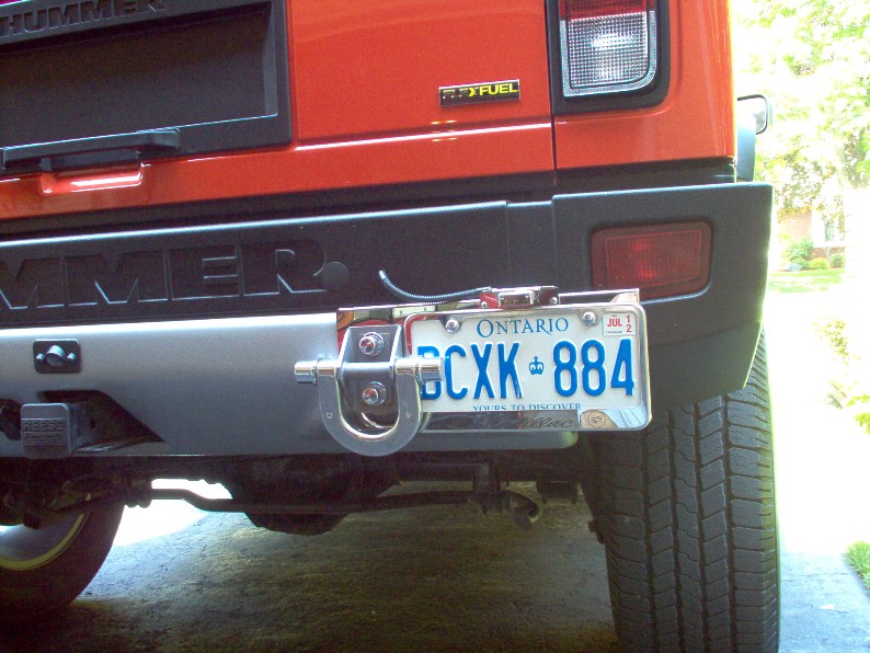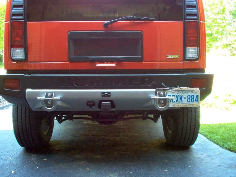 My 09 H2 was bought with the rear tire carrier removed.Clean look at the back.I just got the truck last fri,and noticed where they put the licence plate,the right back tow hook bolt completly blocks the first letter of the licence plate.I told the sales guy that is a good reason for a cop to pull you over for that.He then said the owner of the GM dealership bought the truck for himself in 09 and removed the spare tire carrier from day one and never got stopped by the police ever.I am still a little leary of having the plate like that.I live in London,Ontario,Canada and the city cops here just look for a excuse to pull you over.I like the look of the licence plate going in the black center square where the rear hatch release is.Only one thing,just wonder how many H2s that have it back there have a plate light there.Last question is the mounting of it.Do you line it up and just drill plate holes through the gate,and bolt it on.Hopefully someone here that has put the plate there can give me some tips on the best way to do it.Or,is putting the plate in another spot easier.I am open to all options.