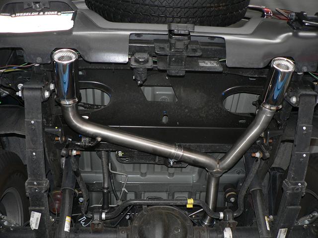 Looks good! Is it just the pic or does the exhaust bend up right at the rear axle or before? Hard to tell, but might want to look at that if you cram tires a lot. Had a dual exhaust put on my Cherokee, though the bend was ok and tore the clamps and bent a tube first time I stuffed the rear axle. Have someone fat jump up and down on the rear axle to see if it will articulate up into the tube, or go climb some curbs or something - better to find out now than later on the trail and have to listen to a torn exhaust all the way home.