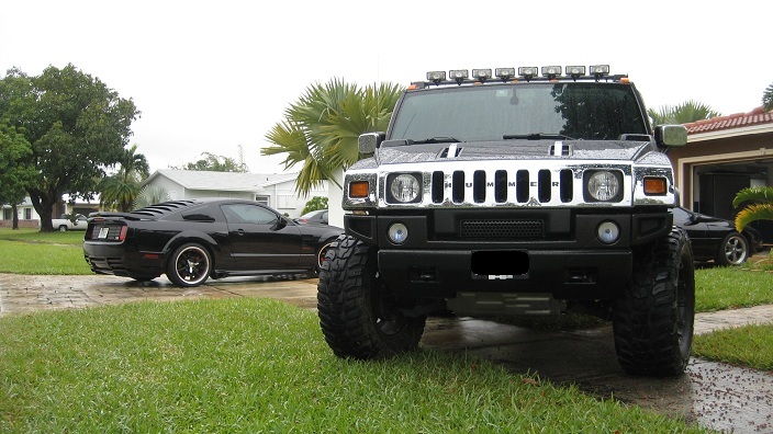 I too have the blacked out Hummer and a black badass Mustang, its my other baby, its a 560HP Procharged Roush edition show car... doesn't get rained on, but on sunny days I beat the H3ll out of it