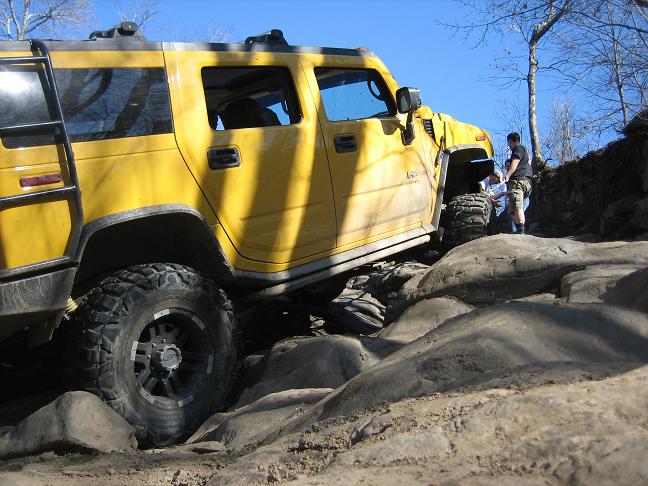 Ill have to agree with Jason the trail is that rugged....granted you dont have to do everything he did but if you do theres a good chance the out come will be the same. lol, after seeing Jason run Guardrail i figured i should keep my non dented H2 off of it even though i was 100ft from it. I did get a dent later on but i was playing around with my tilt o meter instead of running my line. Next time we plan a Tellico trip you should come along--its a great time!