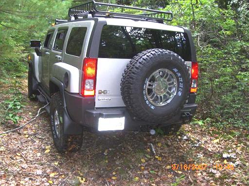 07 H3 / Black / Black Leather / Lux / Sunroof / XM / Pioneer AVIC-D3 / Roof Marker Lights / Chrome Package / Tow-package / OEM Brushguard / OEM Mud Flaps / Tail Light Guards / 35" BFG MTs