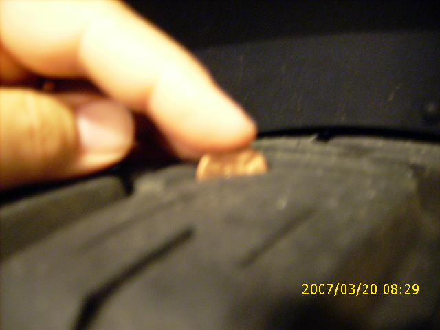 Here are a couple photos of the tread depth, the photos were take within the past 5 minutes, please disregard the date/time stamp, @#$%^&* camera.